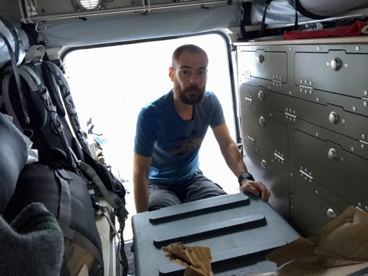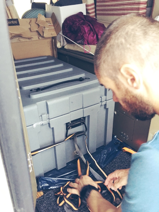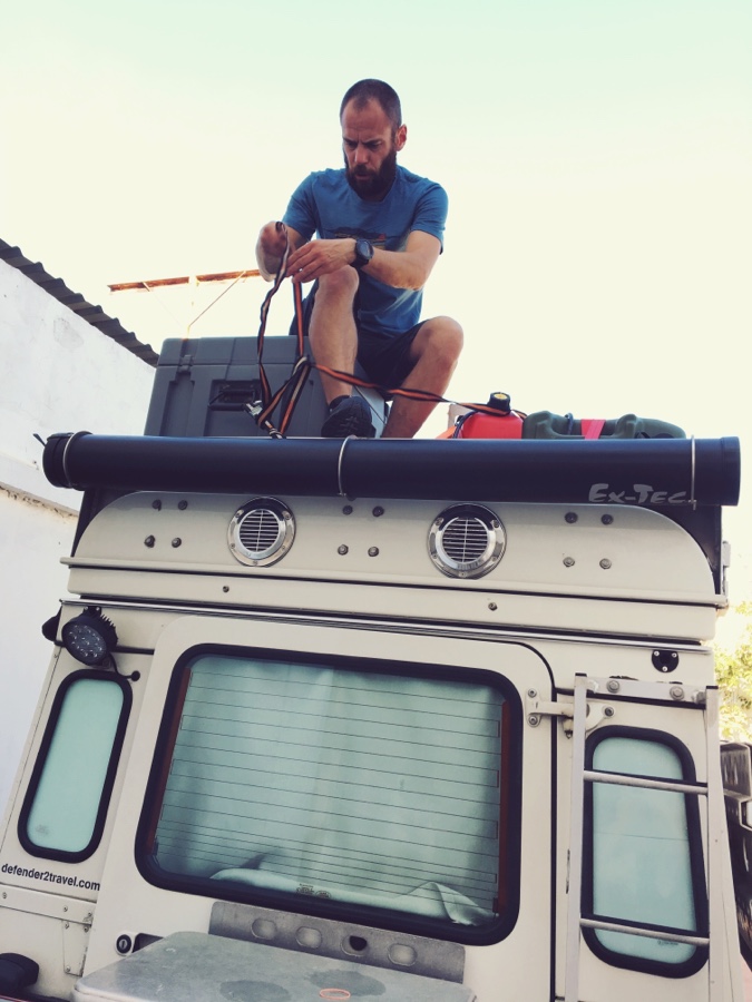 7. Auto ready machen, große Box runter, Öl nachfüllen, Kanister leeren, Box innen verzurren, Höhe nochmal messen, „Gefahrgut“ wie Obst raus aus dem Auto, Kühlschrank leeren und ausschalten,…