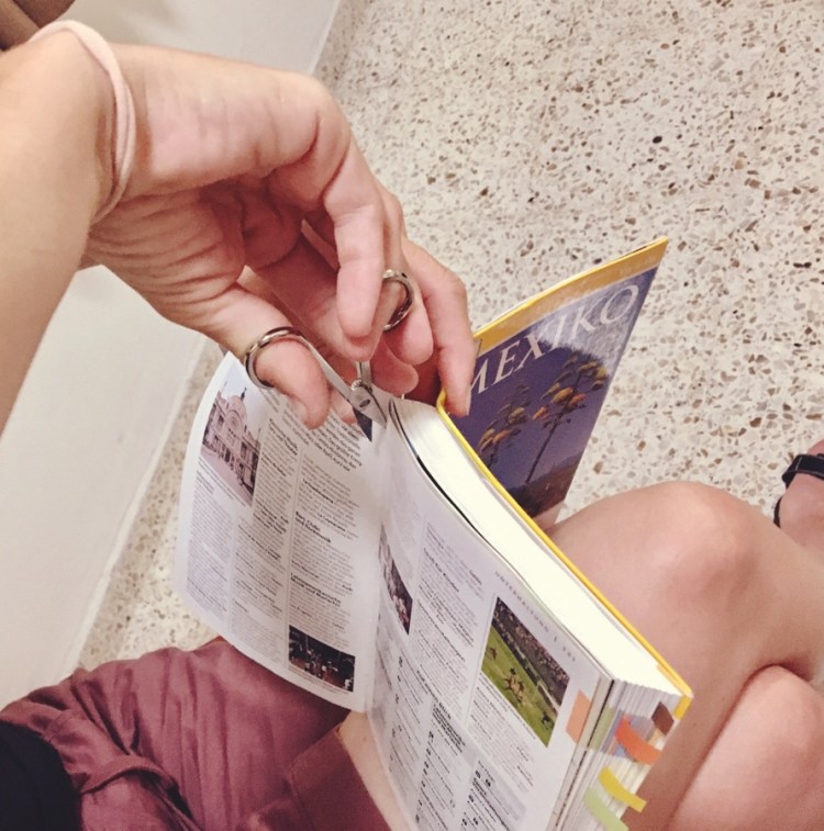 6. Müssen entscheiden, was wir nach Mexiko City, auf den Flug nach Cartagena und für die ersten Tage dort mitnehmen. Im besten Falle nur Handgepäck, also reduzieren was geht. Martina sieht keine Chance ohne ihren geliebten Reiseführer in die große Stadt zu fahren, also wird für Gewichts- und Platzreduzierung nur der Mexico City Teil rausgeschnitten und mitgenommen.