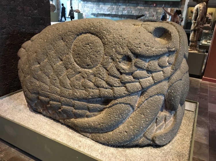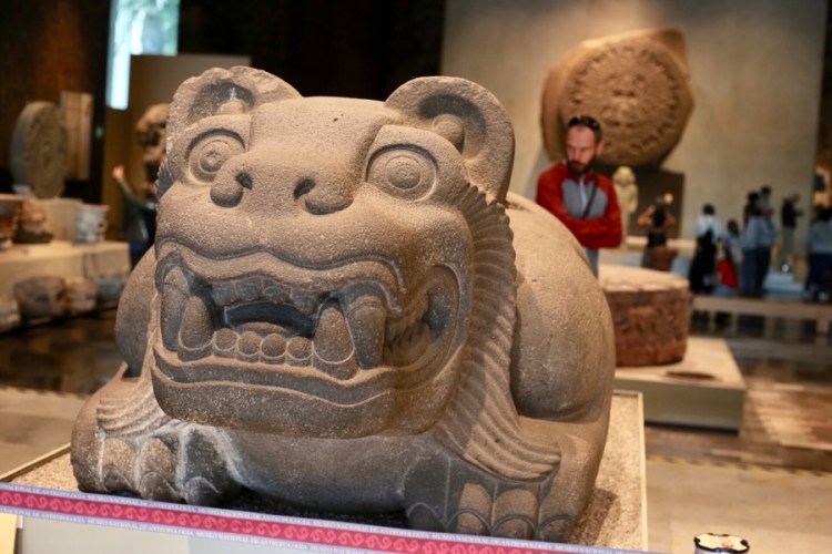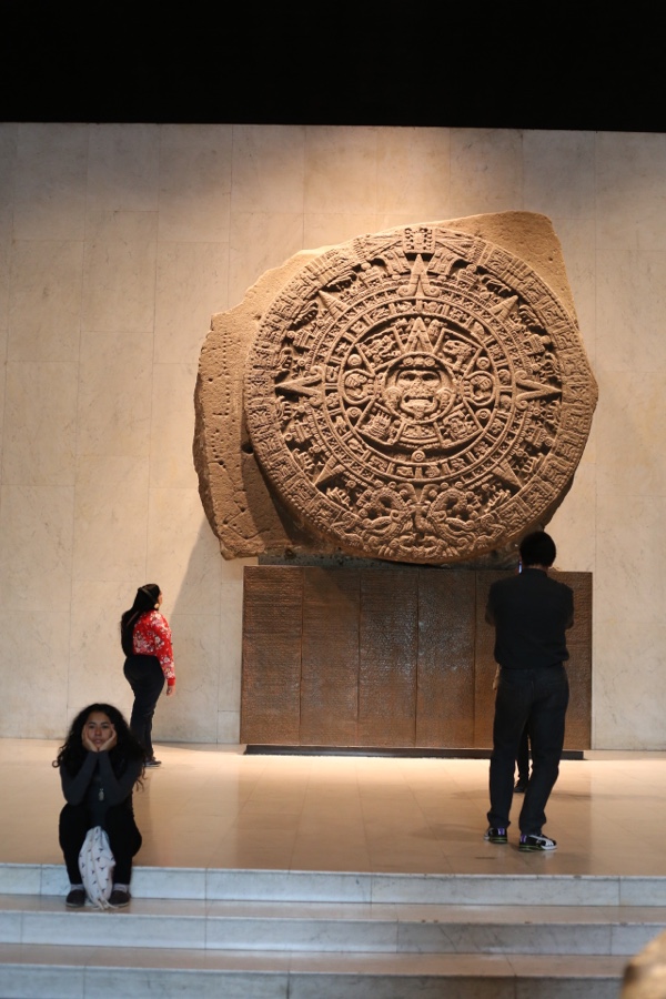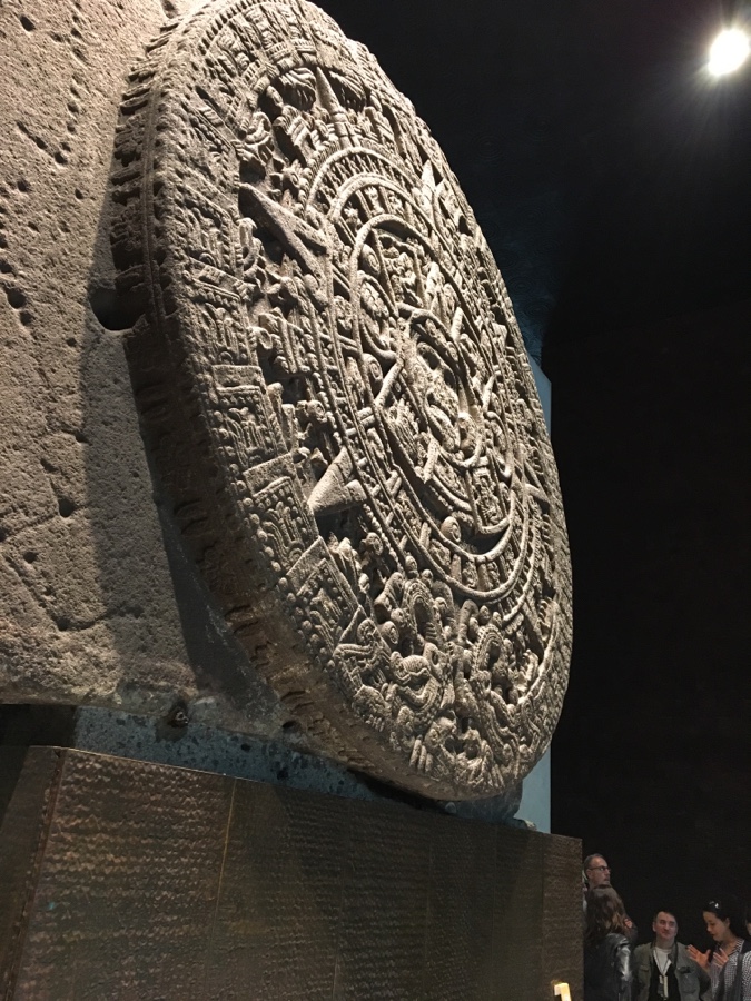 Die große Steinscheibe, der Sonnenstein, wiegt 24 Tonnen. Das große Gefäß in Form eines liegenden Jaguar-Adler wurde als Behälter für die Herzen der Geopferten benutzt. Mit diesen Infos sieht man die Objekte vor Ort gleich anders an…!