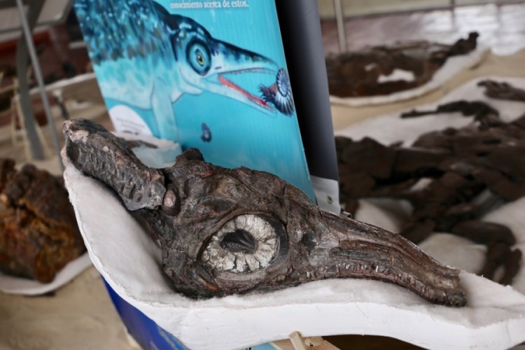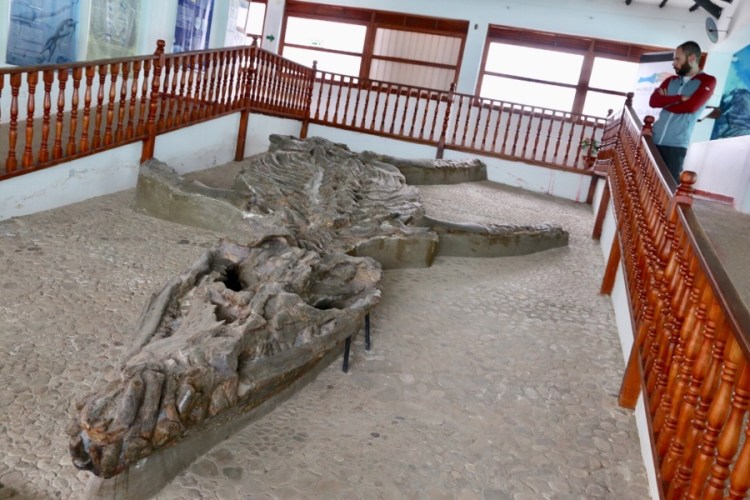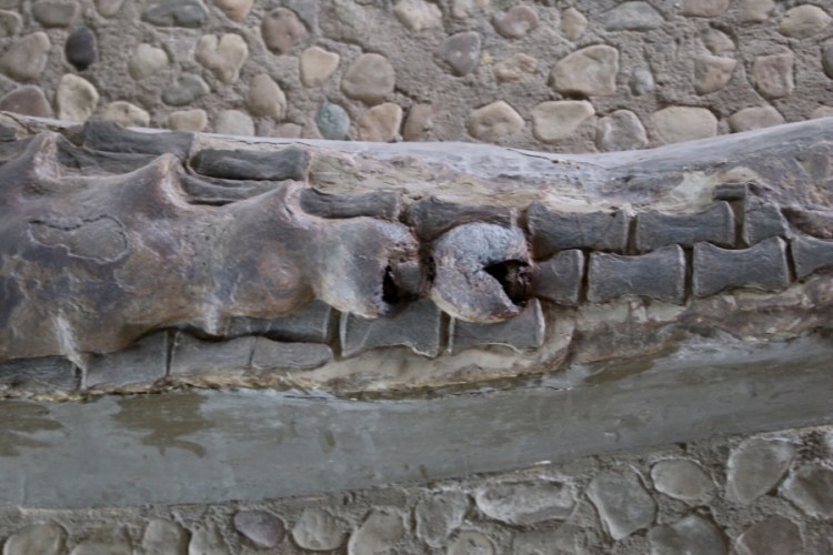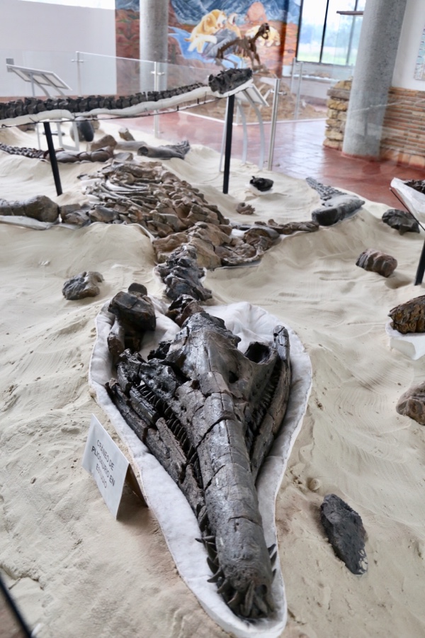 Das versteinerte Skelett eines schwimmenden und fischfressenden Sauriers (Kronosaurus) ist über 7 Meter lang und exakt da, wo es gefunden wurde! Man sieht nicht nur die Knochen, sondern auch die Haut. Schon sehr spannend sich vorzustellen, wie der durchs Meer schwimmt. Die Geschichte der Erde wird wieder mal greifbar… und wir klein!