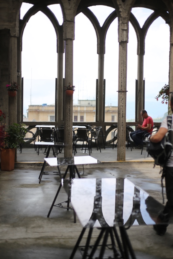 War irgendwer von euch schon mal in einem Café in einer Kirche? Also nicht neben einer Kirche, sondern echt drinnen, oben in einem Balkon. Die neogotische Kirche „Basilica de Nuestra Señora del Rosario“ von 1939 ist komplett aus Beton und seit kurzem gibts hier Kaffee und Kuchen. Der Turmzugang wurde bissl umgebaut, eine Kaffeemaschine rein und Stühle aufgestellt – fertig! Für uns sehr skuril und zugleich spannend.