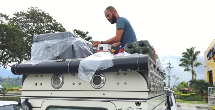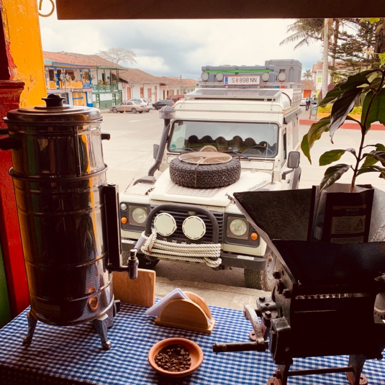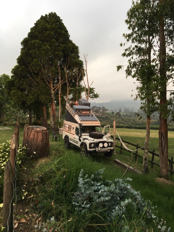 Dann starten wir die Fahrt nach Süden. Wie ihr schon wisst, wollten wir an dem Tag Richtung Grenze aufbrechen, um ein paar Tage danach in Ecuador zu sein. Wir passen uns vorher aber hier noch bissl an! Kolumbianische Lösung auf Grund zu viel kolumbianischen Platzregen für deutsche Boxen!