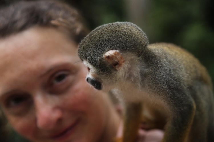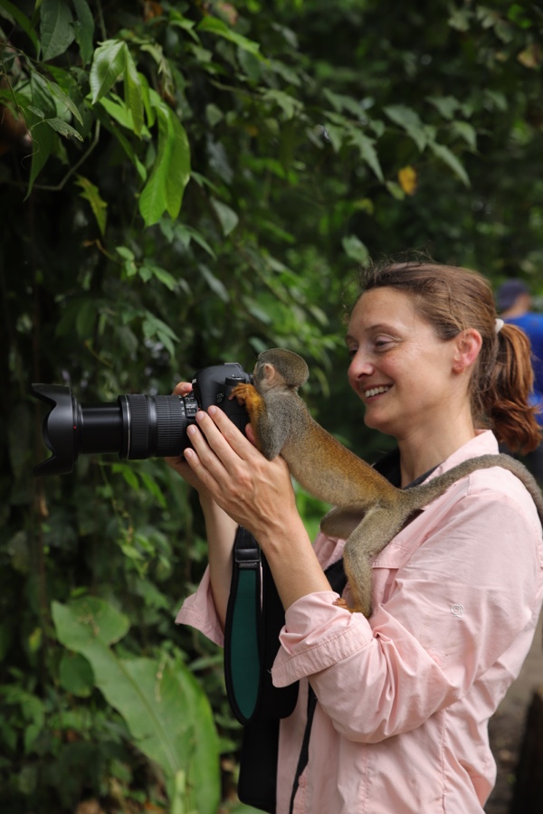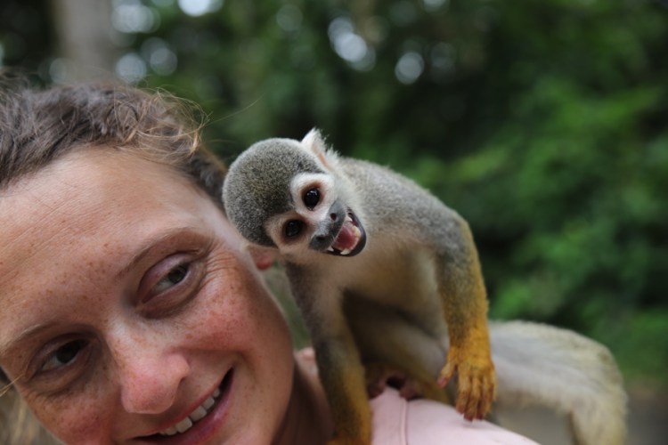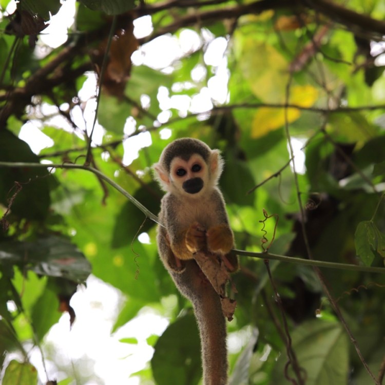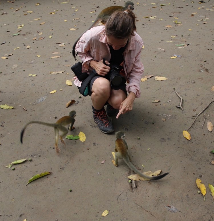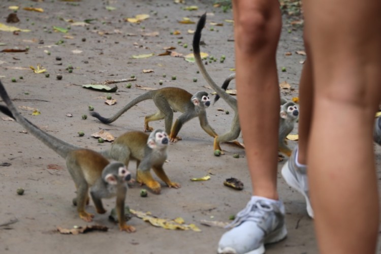 Auf der Isla de Micos erwartet uns ein besonderes Erlebnis; besonders, weil wir Affen nur im Zoo und meist nur hinter Glas kennen. Die frei lebenden Affen hier werden mit Früchten gefüttert, sodass sie wie Eichhörnchen herkommen und neugierig schauen, ob sie was bekommen. Aber nicht nur das, sie klettern und springen von einem Touristen zum anderen. Wir Mädels mussten nur unsere Ohrringe rausnehmen und man darf sie nicht berühren. Mit ihren kleinen Fingern kratzen die Affen überraschenderweise überhaupt nicht und sie sind total leicht. Komisch, wenn Wildtiere so angefüttert werden, aber natürlich mega spannend, dass sie so nah kommen und man sie ganz genau betrachten.