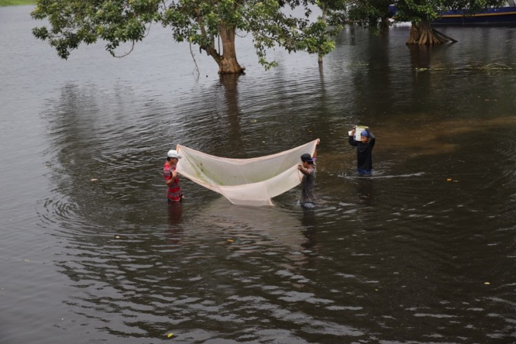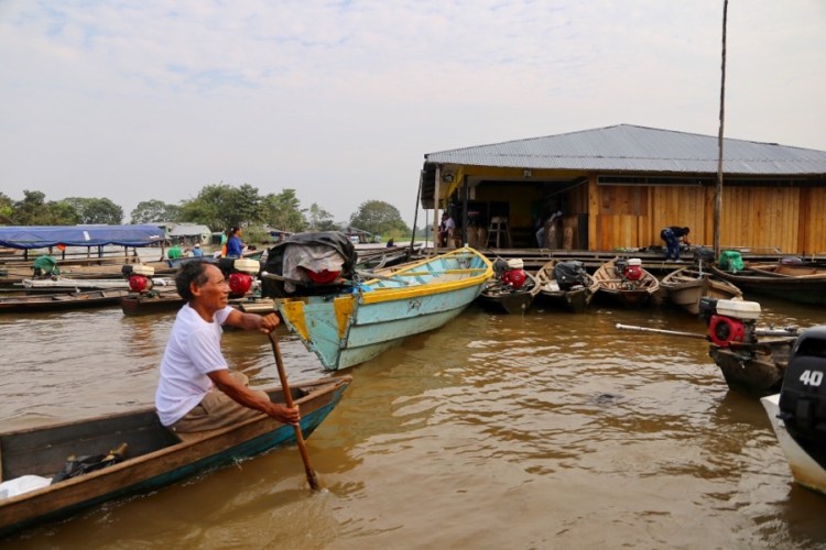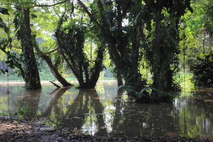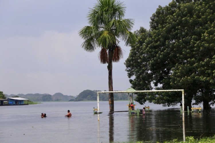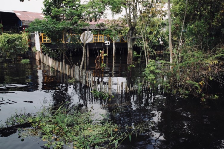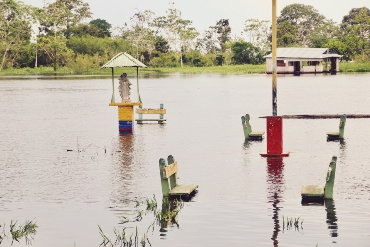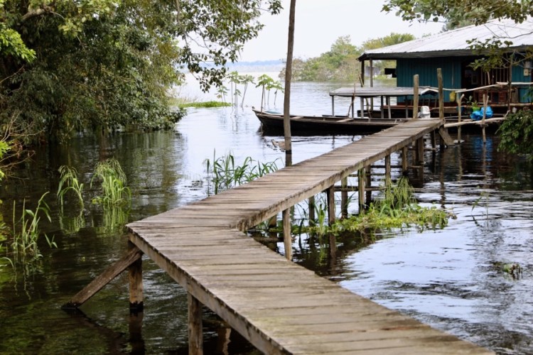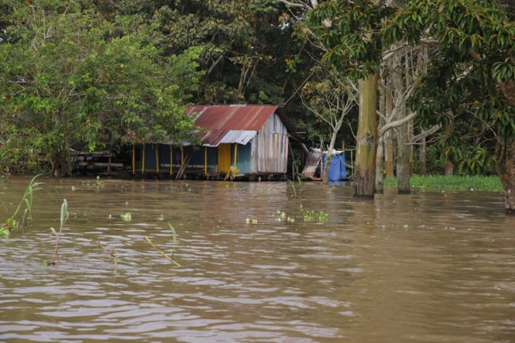 Es ist Regenzeit, alle Gewässer rundum sind ein paar Meter, besser gesagt bis zu 15 Meter (!) höher als in der Trockenzeit. Der Amazonas ist mehr ein Meer als ein Fluss und was in der anderen Hälfte des Jahres Land ist… ist nun überflutet. Alles zwischen Seen und Flüssen ist unter Wasser. Ok, nun verstehen auch wir, warum das Amazonasgebiet beim Reisen eine unüberwindbare Barriere darstellt – es sei denn man befindet sich auf einem schwimmenden Gefährt.