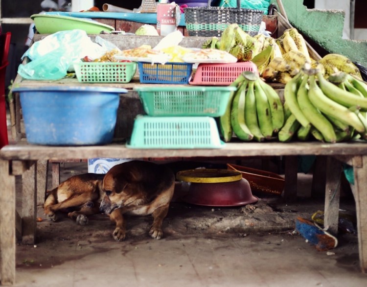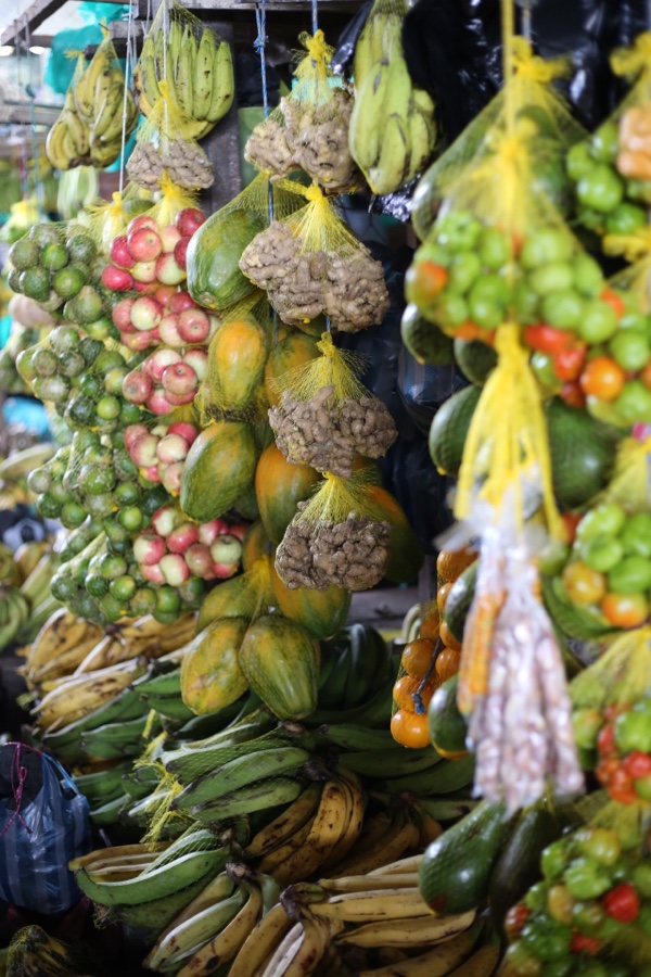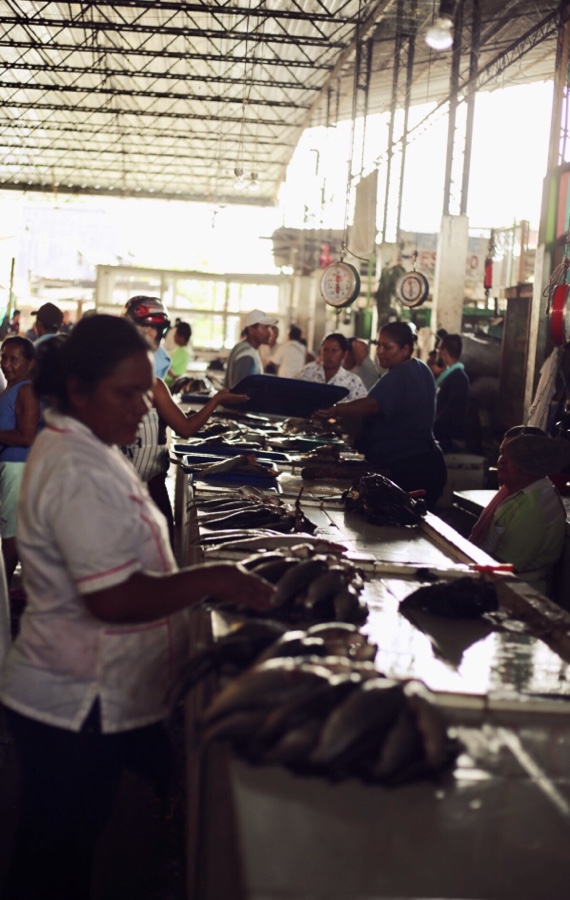 Auf dem Weg zum Markt, wo wir dann mit Fischgeruch in der Nase einen „Maracuja en leche“ trinken und so ziemlich die einzigen Touristen sind.