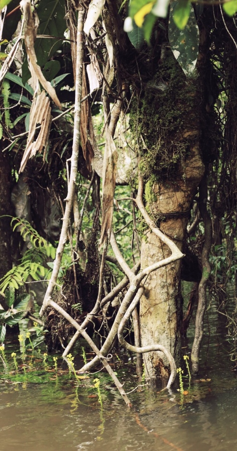 Ok… so viel Zeit zum Schauen und Fotografieren ist doch nicht, weil wir als 4er-Team im Boot viel zu unkoordiniert rudern und wir ständig direkt aufs Gestrüpp zusteuern. Beim Boot mit dem Guide sieht es viel entspannter aus und sie kommen natürlich auch schneller voran! Wir kämpfen… verhaken uns… wieder zurück, wieder vor… aber wir haben viel Spaß!