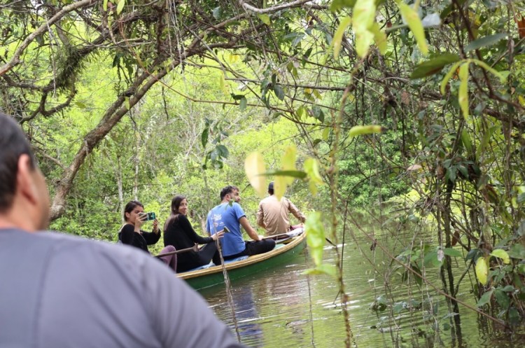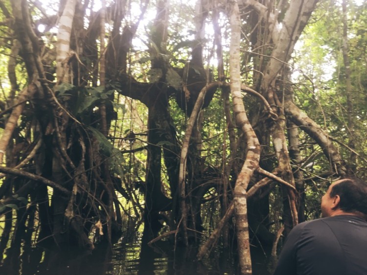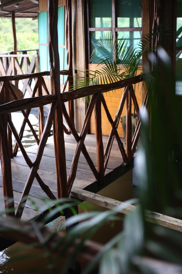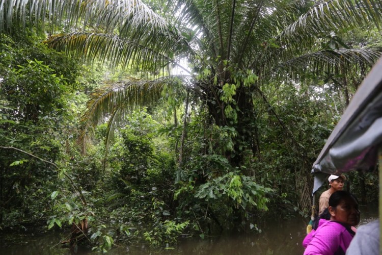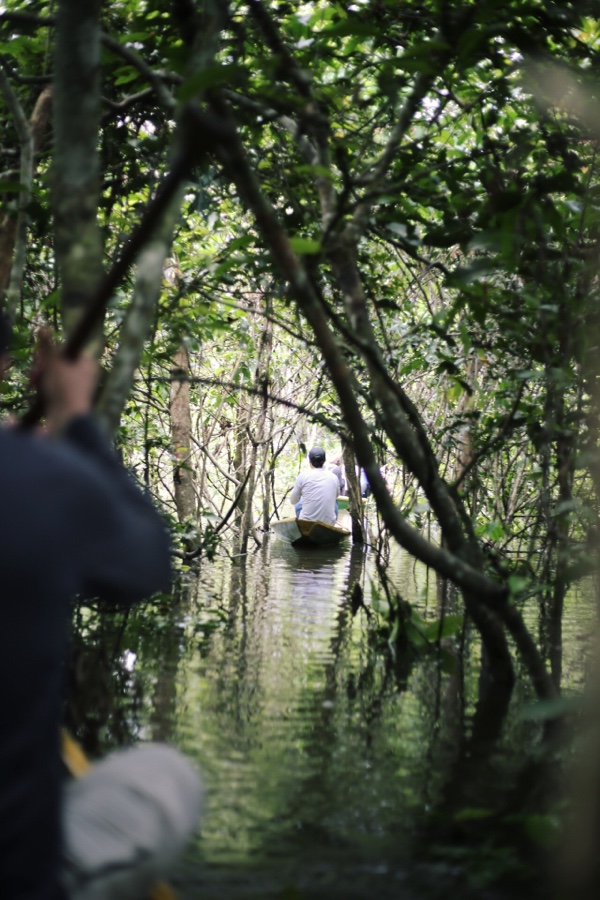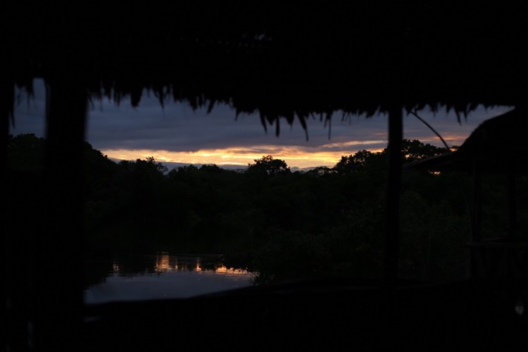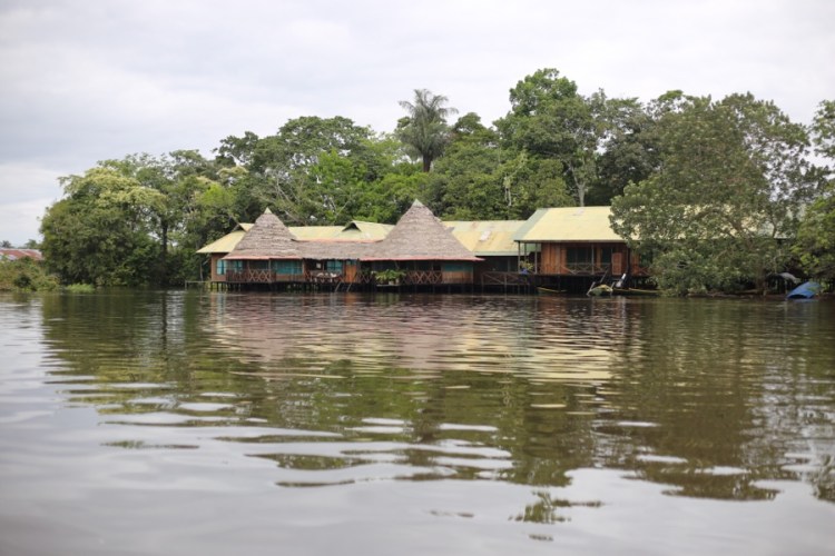 Über den Amazonas, der übrigens an der Stelle gerade über 4 Kilometer breit ist, geht es nach Peru und mit einem kleineren Boot durch den Wald zur Zacambu-Lodge.
