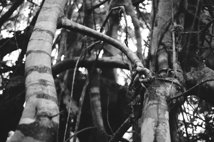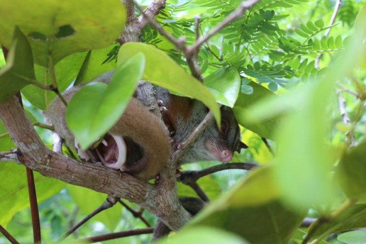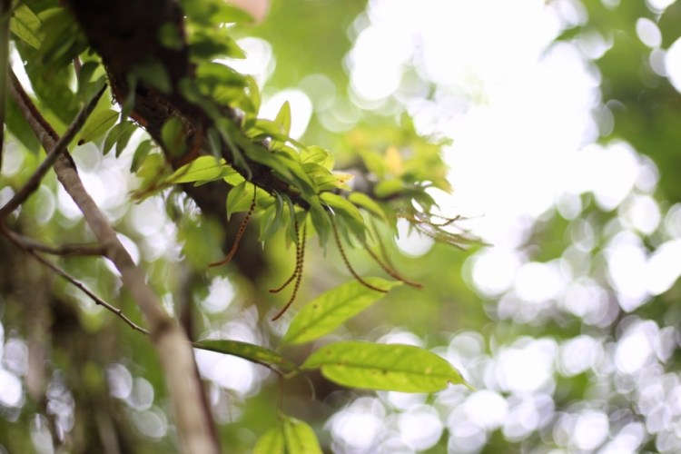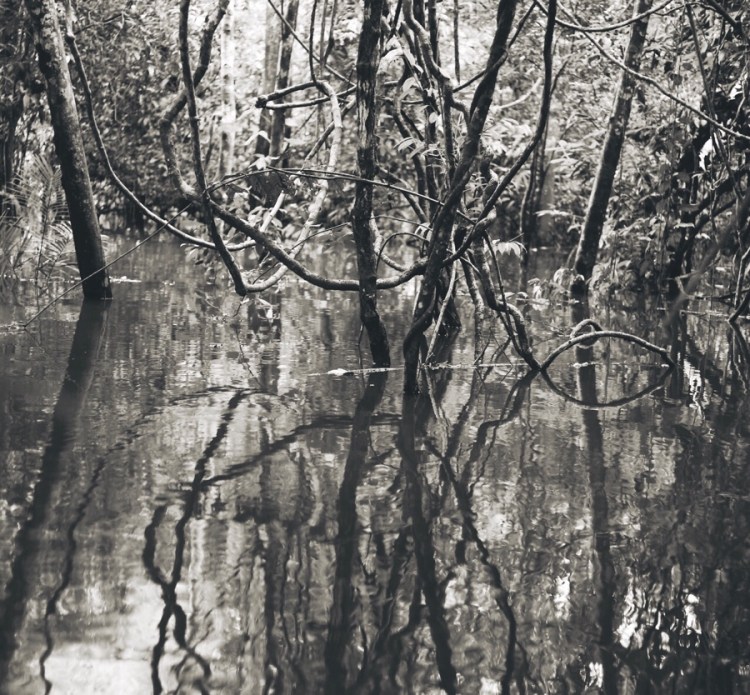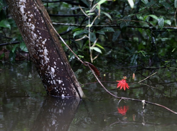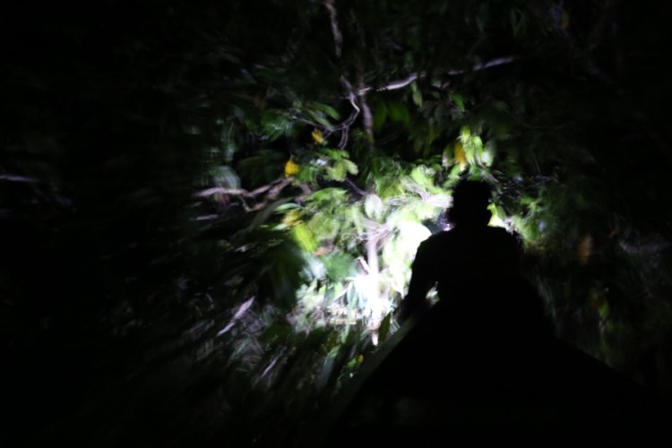 Satt vom Tiere suchen und müde bin ich noch nicht,… und finde sofort einen Gleichgesinnten. Wir stellen also noch eine ungeplante Nachttour auf die Beine. Auf dem See kanopen wir im Dunkeln eine Runde und endecken schlafende Tauben, ein Faultier und Frösche. Ich genieße die friedliche Stimmung, die Geräusche der Nacht und die Reflexionen auf den Bäumen. Wenn man schräg aufs Wasser leuchtet, scheinen die Bäume zu Wasser zu zerfließen. Manches kann man nicht fotografieren, aber trotzdem mitnehmen.