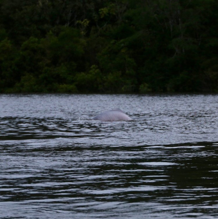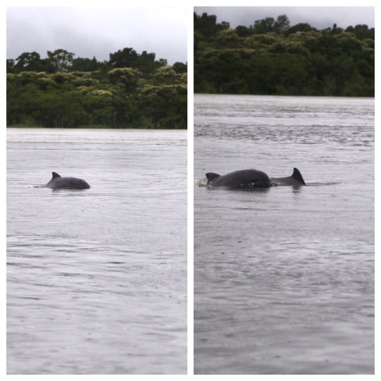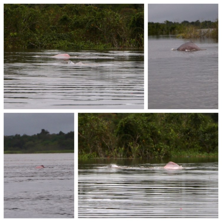 Mit Erfolg! Wir waren von grauen und rosa Delphinen umgeben. Fotografieren ist natürlich schwierig, man weiß echt nie, wo sie grad auftauchen. Die rosaroten Amazonasdelphine (botos), die ich unbedingt sehen wollte, die sind wirklich rosa!