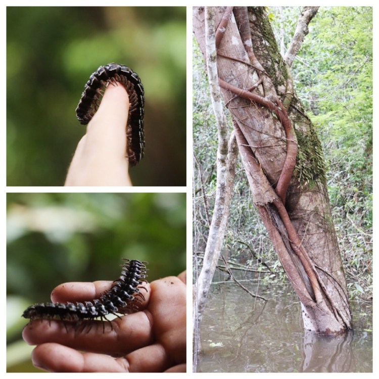 Nachts – begleitet von hunderten quakenden Fröschen – sucht unser Guide mit der Taschenlampe Kaimane. Die gibts hier nur in der kleinen Variante, aber auch in klein ist es ein uriges Tier aus vergangenen Zeiten… ich liebe ja alles was nach Dinosaurier aussieht.