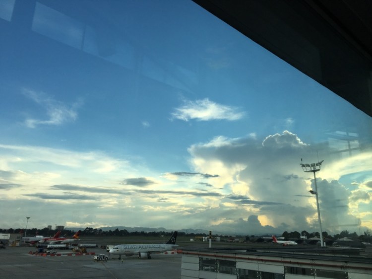 Ich stand dann aber trotzdem in Cali, da mein Flieger Leticia-Bogota in Bogota nicht landen konnte und daher weiter nach Cali flog. Schlechtwetter! In Cali musste ich im Flugzeug auf den erneuten Start warten… während Martin in Bogota auf mich wartete.