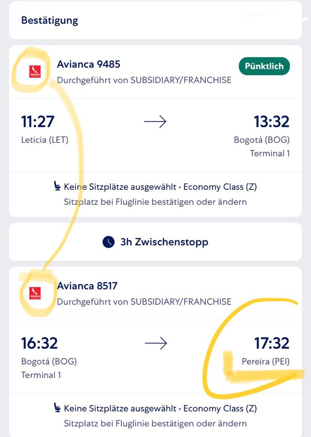 Das Gespräch fand im Flugzeug am Flughafen in Cali statt… ja, stimmt, da wollte ich gar nicht hinfliegen. Die Rede war von Manizales nach Bogota und von dort aus nach Leticia! Beim Zurückfliegen wollten wir auch unsere zwei Fehler nicht nochmal begehen und buchten Leticia-Bogota und weiter nach Pereira und zwar diesmal mit der gleichen Airline! Klar, oder?