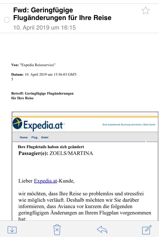 Ausgerechnet Laura, die uns davor gewarnt hat, hilft uns dabei, den Folgeflug zu verschieben.