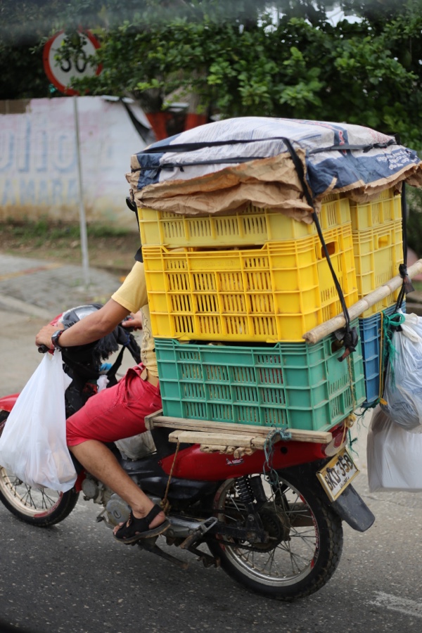 Vorher ein letztes Mal das skurrile Straßenleben Kolumbiens. Ein wenig werden wir es vermissen, wie crazy hier alles transportiert wird. Wenn man denkt, man hat alles gesehen, setzen sie eins drauf… kolumbianisch!
