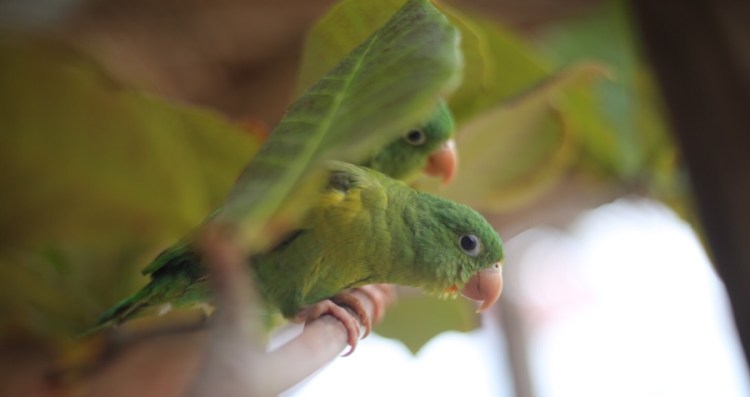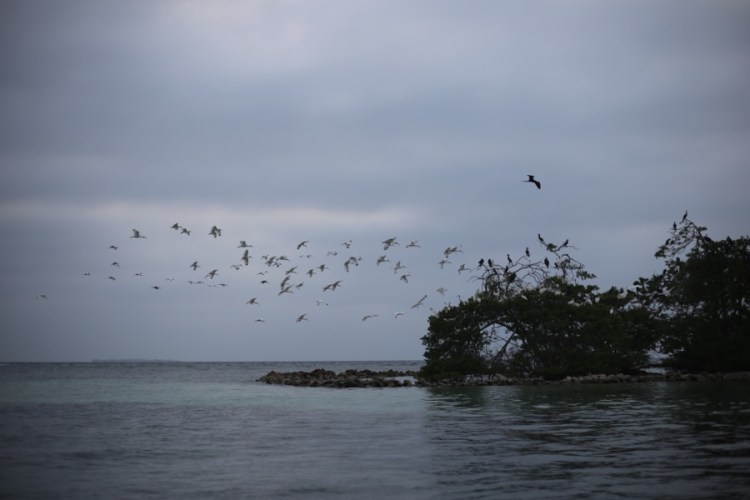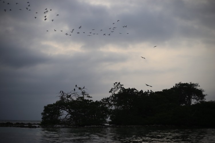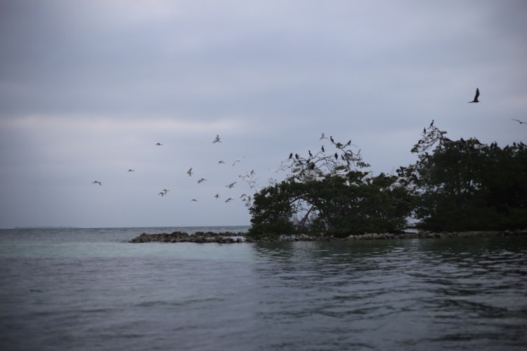 Mit ein bisschen zu viel Vollgas – das kleine Boot setzt so hart auf den Wellen auf, dass man jeden Schlag im Nacken spürt – geht es raus aufs offene Meer. Erstes Ziel eine kleine Vogel Insel, die als Schlafplatz für sie dient.