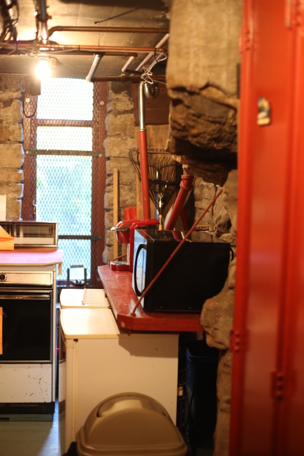 … und über die Papiertücher in der Wand schmunzeln wir, aber das Haus hat natürlich seine Probleme… Wasserfall ist Wasserfall und 1934 (Baubeginn) ist lange her. Wenn man überlegt, wie damals die Autos ausgesehen haben, wird schnell klar, warum es eine zeitlose Ikone ist.