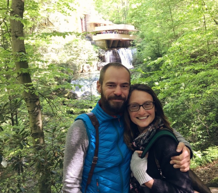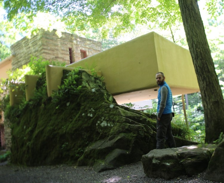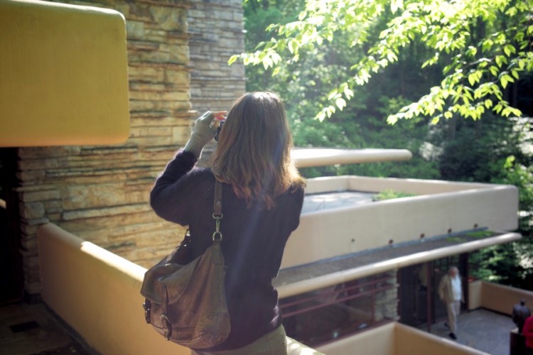 Manchmal sind die Ziele, die man sich im Kopf groß ausmalt ja in Wirklichkeit dann unbedeutend oder sogar entäuschend. Das Gebäude ist eins der Wichtigsten der Architekturgeschichte und je mehr man drüber liest, desto neugieriger wird man. Oft sind Architekturikonen ja Kirchen oder Museen… aber hier handelt es sich um ein Wohnhaus, ein Ferienhaus. Man kann es also nicht nur anschauen, sondern sich reinversetzen, sich vorstellen hier zu wohnen. Wie wäre es hier ein Wochende zu Gast zu sein? Wie fühlt es sich an über dem Wasserfall zu leben, also mit dem Wasserfall? Wie laut ist es, wie gemütlich ist es, wie sind die Nebenräume, von denen man selten Fotos findet? Wie sind die Möbel, die Wright alle entworfen hat? Wie verknüpft Wright die Natur und das Haus, was ihm ja ein Anliegen war. Und wie ist die Atmosphäre dort? Man stellt es sich magisch vor.
