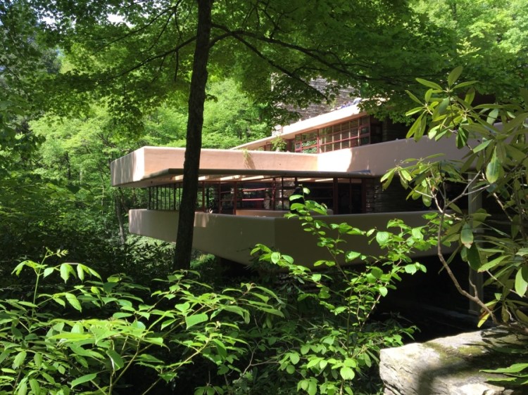 Fallingwater besteht eigentlich aus zwei Häusern, die mit einem überdachten Weg verbunden sind. Das Haupthaus und das Gästehaus. Die Familie Kaufmann machte im Wald auf dem Felsen beim Wasserfall oft Picknick und sie wünschten sich dort auf dem Gelände ein Wochenendhaus. Der Architekt Frank Lloyd Wright solle es entwerfen. Es wurde sein Meisterwerk.