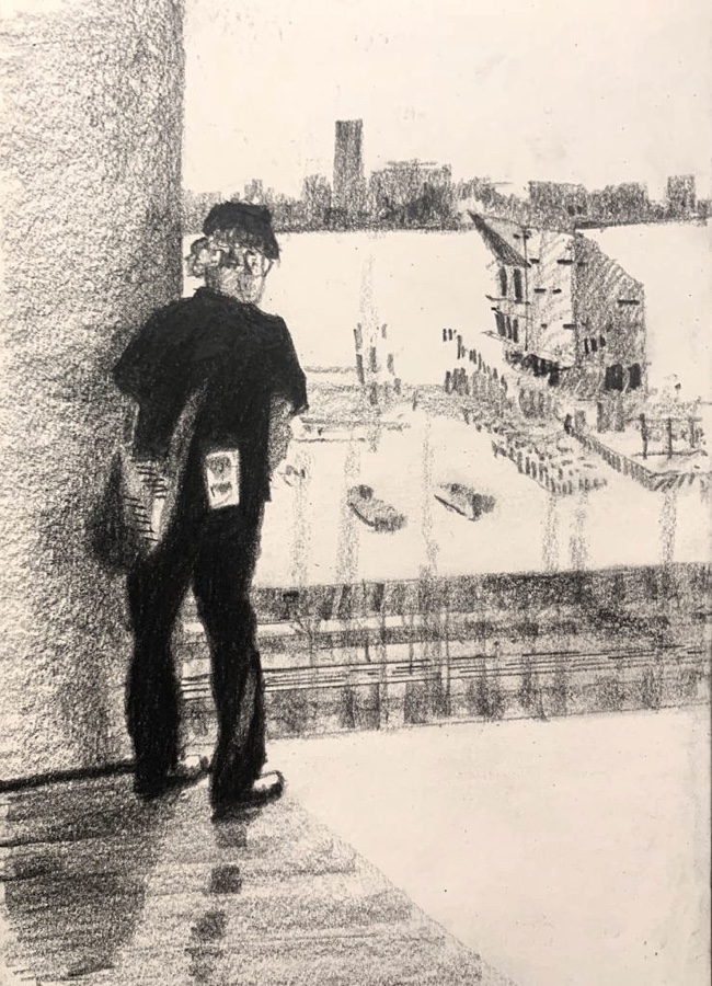 Im Whitney erwischt Martin den Robert beim Zeichnen, anstatt sich die „Kunst“ anzuschaun: