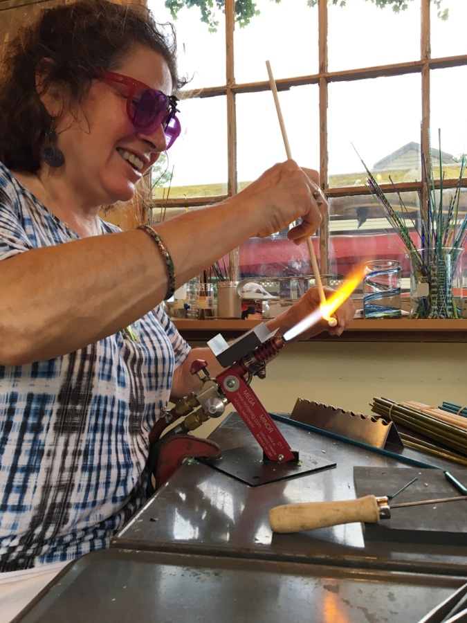 Elena zeigt mir noch, wie sie Glasbeads selbst herstellt…