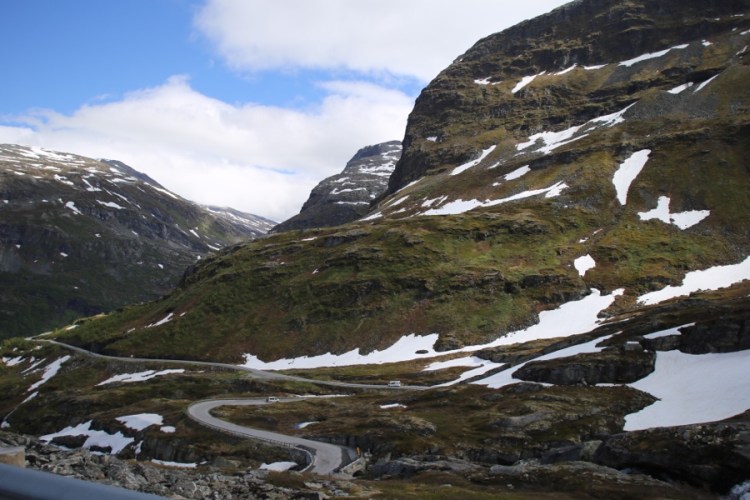Die berühmte Atlantikstraße kann man fahren, muss man aber nicht. Wir finden nach der ersten Brücke Schlafplatz, ändern dann Richtung (wie gesagt zick-zack) und drehen um.