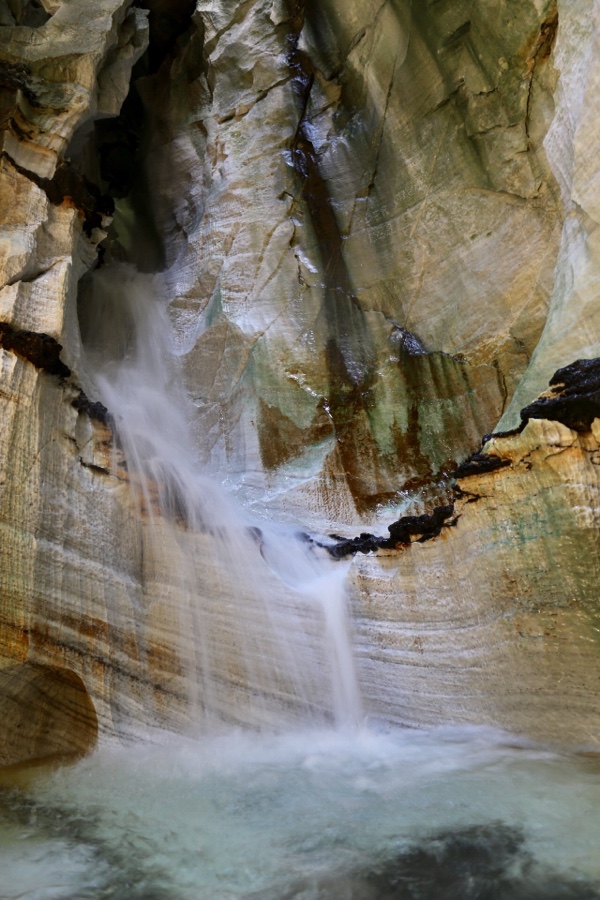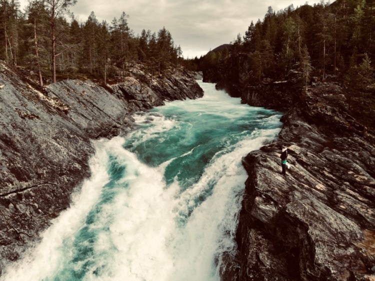 Da ein rauschender blauer Fluss, dem man lange zuschauen kann, wie er seine Wassermassen irgendwie mit Gewalt durch die engere Stelle bekommt.