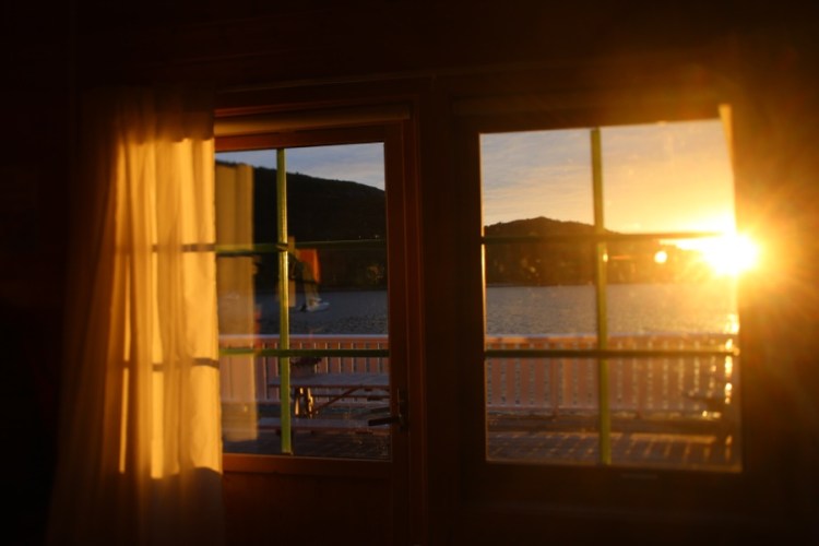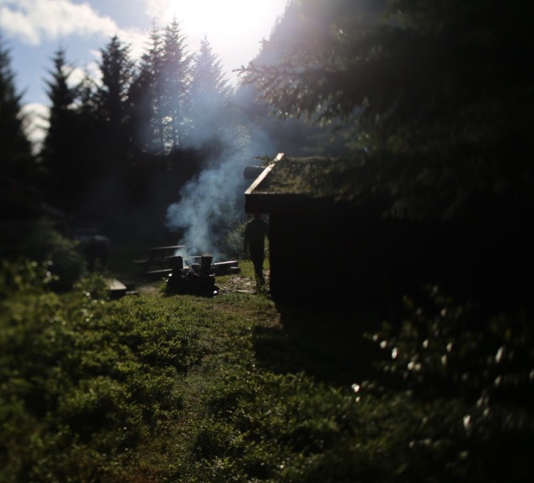 Es entsteht ein schönes Gespräch im Regen und wir dürfen einen Blick in die Hütte werfen, die sie über AirBnB vermieten. Der servierte Kaffee ist hervorragend und nach dem Pläuschchen wissen und finden wir auch unseren nächsten Schlafplatz. Ein Sonnenglücksmoment trotz Regen. Und ein paar Stunden später scheint die Sonne. Wie es der Norweger prophezeit hat.