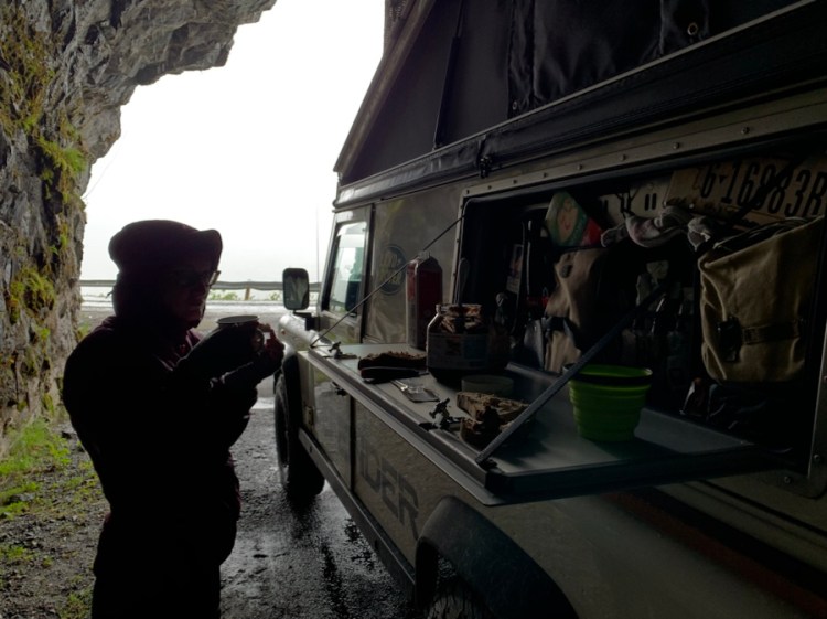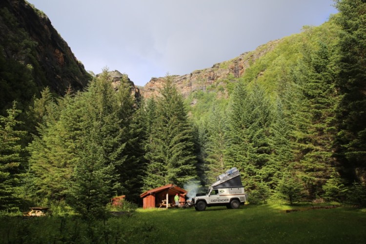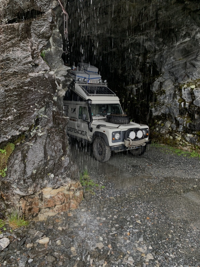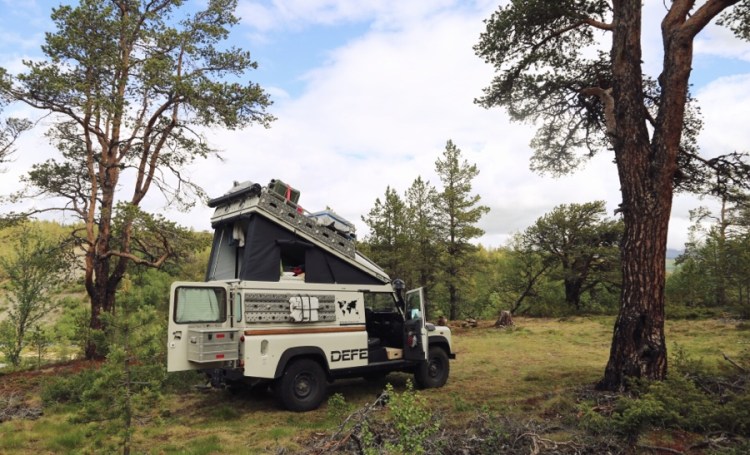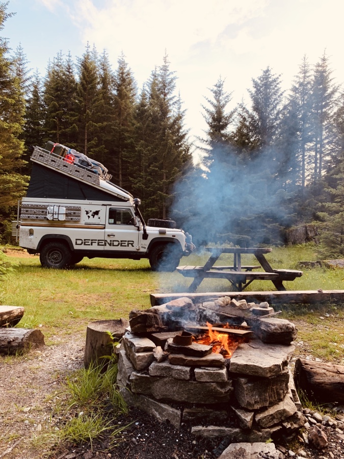 Wir suchen mit dem Defender meist Stellplätze, an die kein normaler Camper hinkommt. Im besten Fall geht’s eine steinige Stufe rauf/runter oder gleich ein steiler Hang. Abgelegen soll er sein, windgeschützt, gerade, mit Licht am Abend, der Boden nicht gatschig, mit Wasserzugang und ohne Mücken. Hab ich von Aussicht und Atmosphäre schon gesprochen? Achja, natürlich sollte morgens noch die Sonne auf die fix verbaute Solar scheinen. Außerdem wollen wir unsere Ruhe. Allein und keine anderen Camper in Sicht. Sowas in der Art: