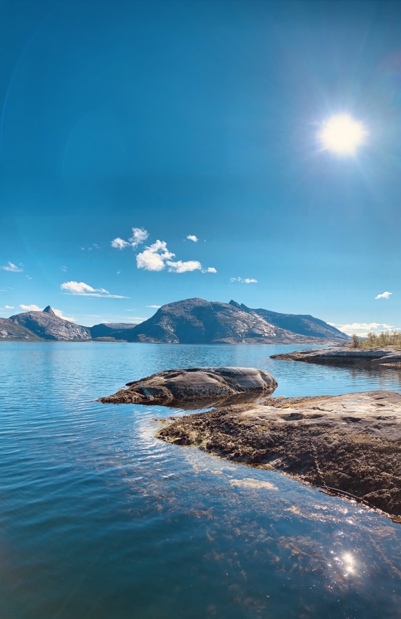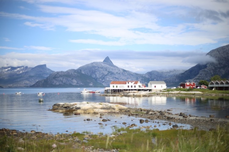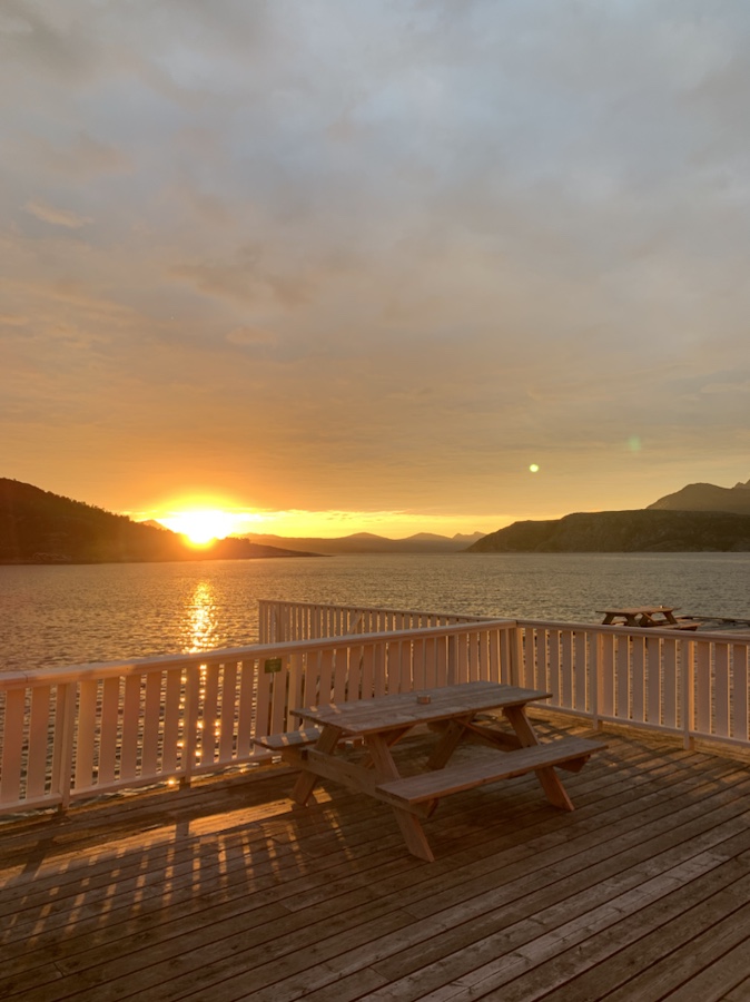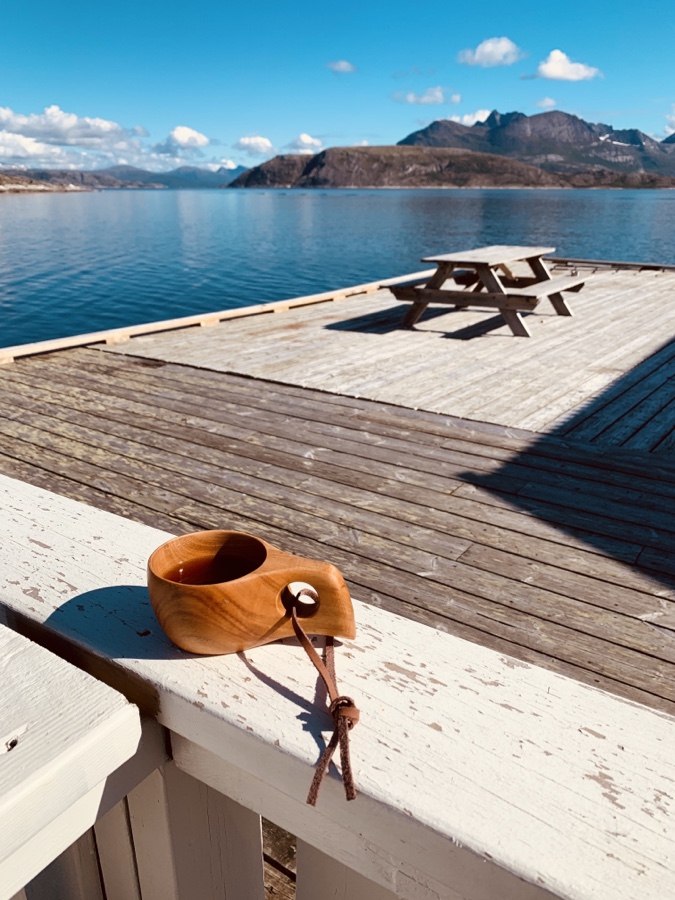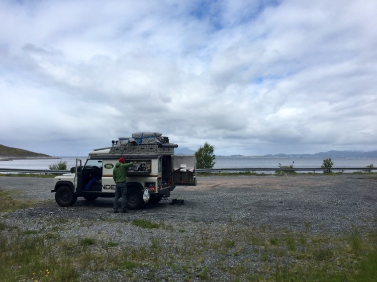 Einfach abbiegen und zum Spaß um eine Insel fahren. Ob wir es bis zu den Lofoten schaffen ist mittlerweile auch Martin fast egal. Hier ist es genauso schön! Auf der Insel Sandhornøya machen wir am Ende der einen Inselsackgassenstraße erstmal Mittagessen, bevor wir die zweite Inselsackgasse in die andere Richtung erkunden.