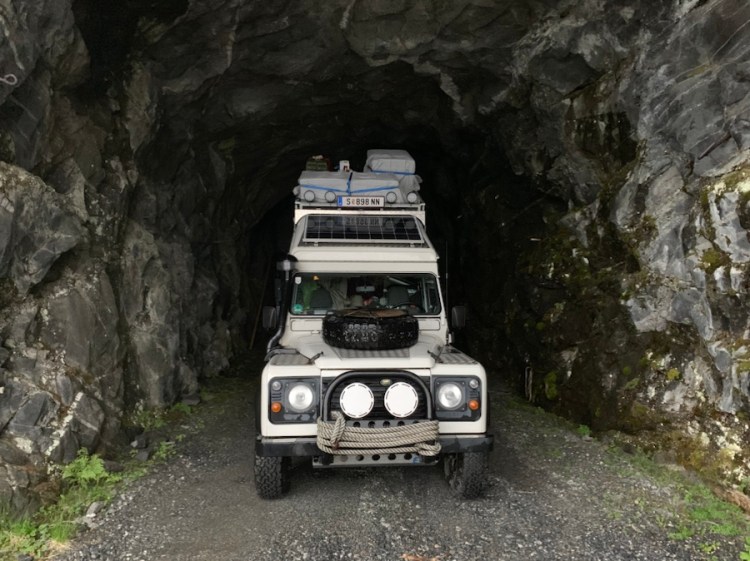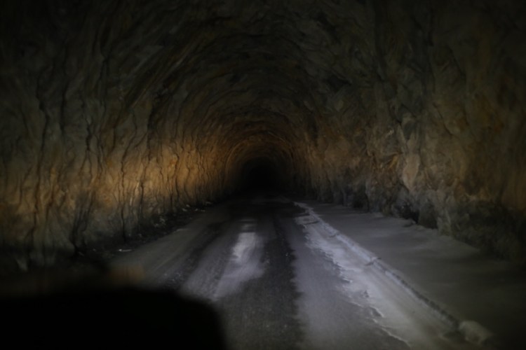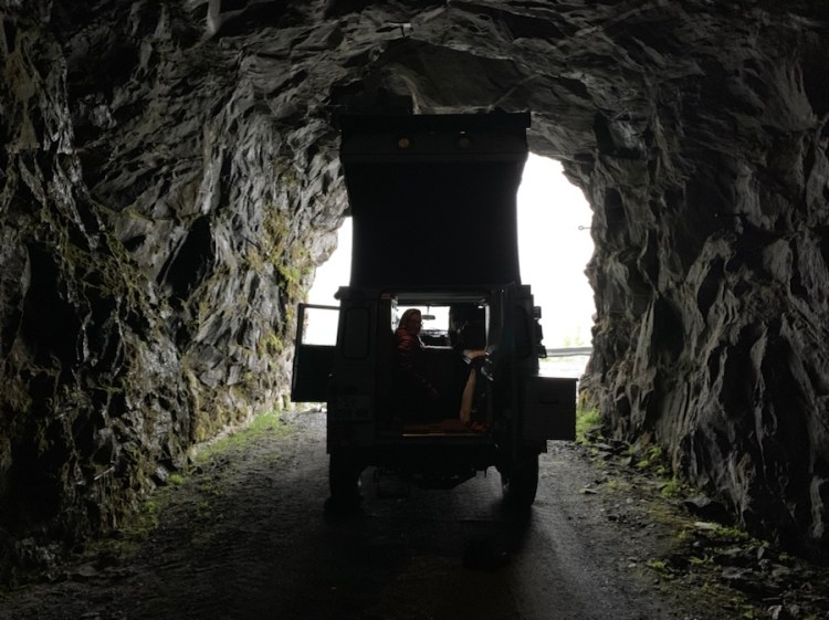 Im Tunnel meint Martin: “So ein Tunnelschlafplatz wäre doch toll! Da ist es trocken und windstill. Perfekt! Was sagst du?” “Naja, mitten im Tunnel eher unheimlich. Ja, ich mag es normal unheimlich, aber da ist ein ganzer Berg über uns oder ein Berg und ein See…”