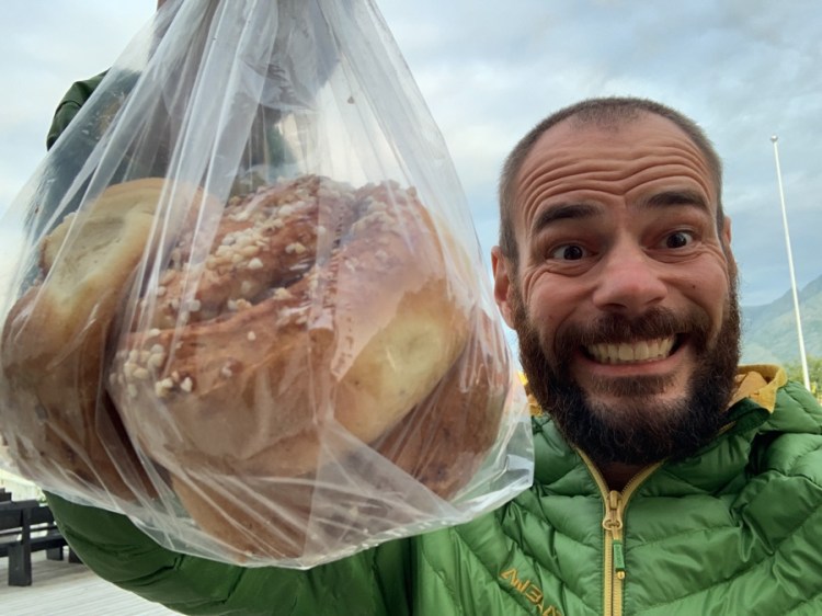 Diesmal zeigen wir euch auch, wo es diese süßen Zimtschnecken und die süßen roten Rorbushütten gibt, weil das Kjerringøy Rorbussenter kein abgelegener Stellplatz sondern eine Urlaubsempfehlung ist!