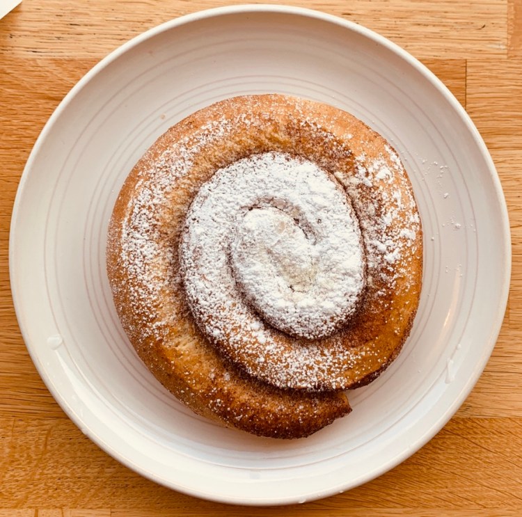 Danach freut sich Martin über Zimtschnecken, die er geschenkt bekommt.