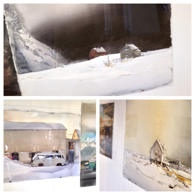 In Henningsvær, das vom Reiseführer liebevoll das Venedig Norwegens genannt wird, gibts eine tolle Galerie, in der sich Martina dann in die Aquarelle von Lars Lerin verliebt. Warum ist klar – weil sie teilweise genauso unheimlich und einsam sind, wie Martinas Fotografien.