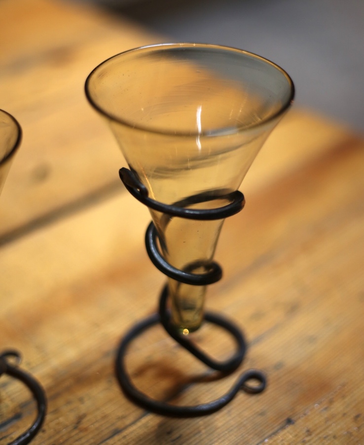 Glas war teures Gut im Wikingerzeitalter, also mal ganz grob gesagt zwischen 800 bis 1100 n.Chr. Und in Norwegen gab es noch keine Glasmacher, somit musste Glas teuer importiert und eingetauscht werden. Teuer heißt 200 Schafe für so ein Trinkglas. Daher fanden sie Scherben auch nur im Bereich der Stelle, an der der Chef im Haus saß.