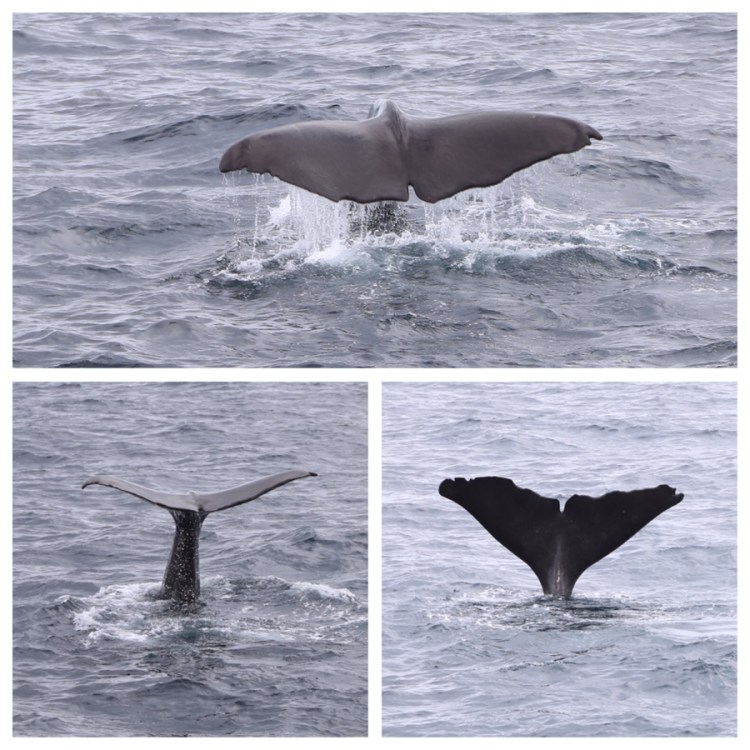 Die Riesenkalmare sind zum Fressen perfekt, denn so ein Wal braucht täglich bis zu anderthalb Tonnen Nahrung. Jetzt beobachten wir in Norwegen wirklich noch drei unterschiedliche Pottwale beim Liegen im Wasser und dann beim Abtauchen. Eins der letzten Highlights der Reise.