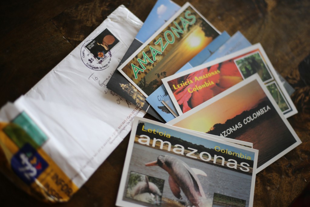 Morgen habe ich die 9. Klasse und verteile also die Postkarten, die sie sich damals in der 7. Klasse von Kolumbien gewünscht hatten.