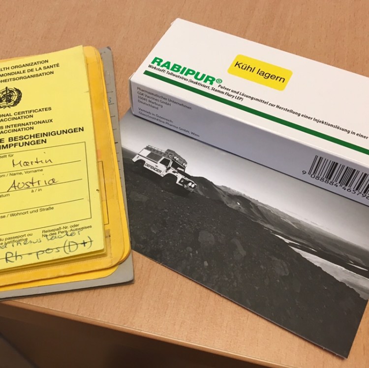 WeiterlesenFür alle, die sich fragen was wir so impfen, wozu uns bei so einer Reise in diesem Stil geraten wurde, hier eine Liste der Impfungen die wir vornehmen oder schon haben. Impfen oder nicht impfen lassen ist immer so ein Thema, aber dies sollte jeder für sich entscheiden 🙂 Gelbfieber Hepatitis A, B Typhus Tetanus […]